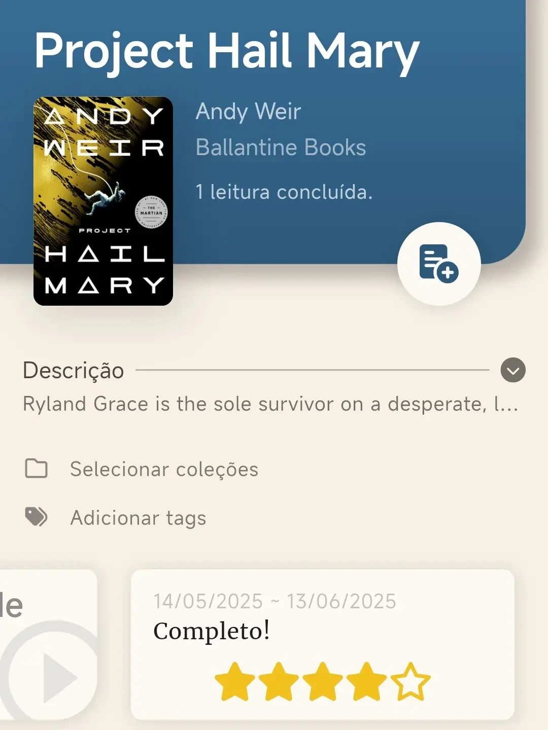 Além disso, que bom que foi perceber que para o próximo ano já poderei ver a adaptação ao cinema. Data de estreia: Março de 2026, com Ryan Goslin como protagonista.