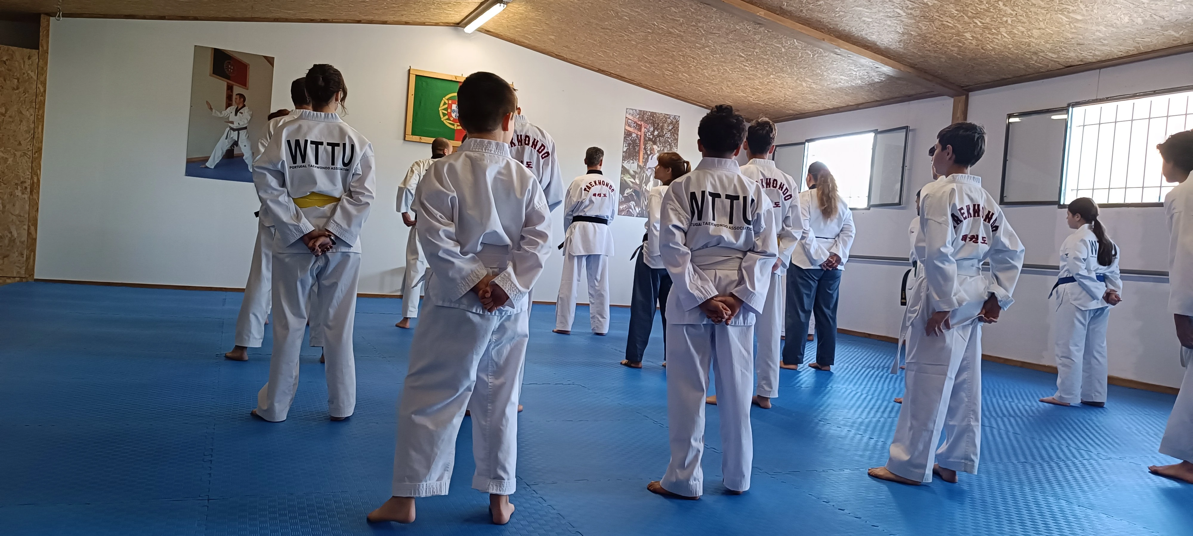 Não é futebol mas vai dar ao mesmo. Hoje abdicamos do domingo de manhã na cama para que o miúdo viesse fazer um exercício de Taekwondo extra aulas. Se correr bem (ainda está a decorrer) mudará a cor do cinto.